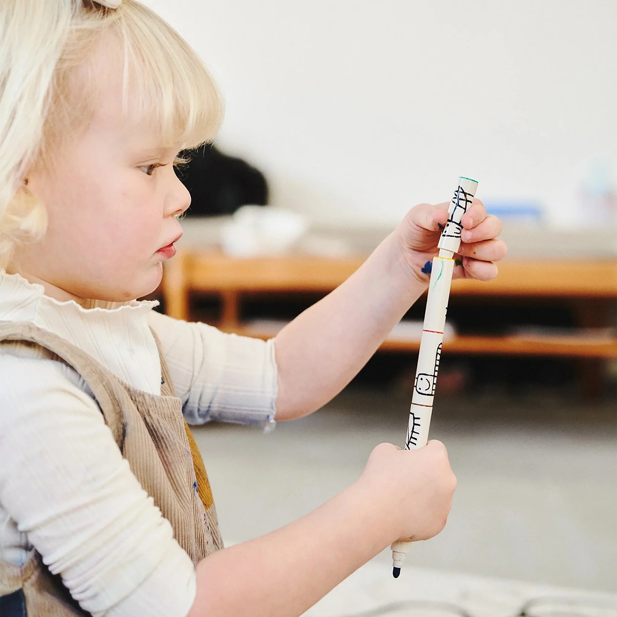 Encourage your child's creativity with Woset's fun and colorful 5-in-1 stackable markers! Adorned with adorable hand-drawn bugs, these markers are as fun to stack as they are to draw with. The easy-to-hold design helps young artists express themselves effortlessly, whether they're drawing, coloring, or making their first masterpiece.