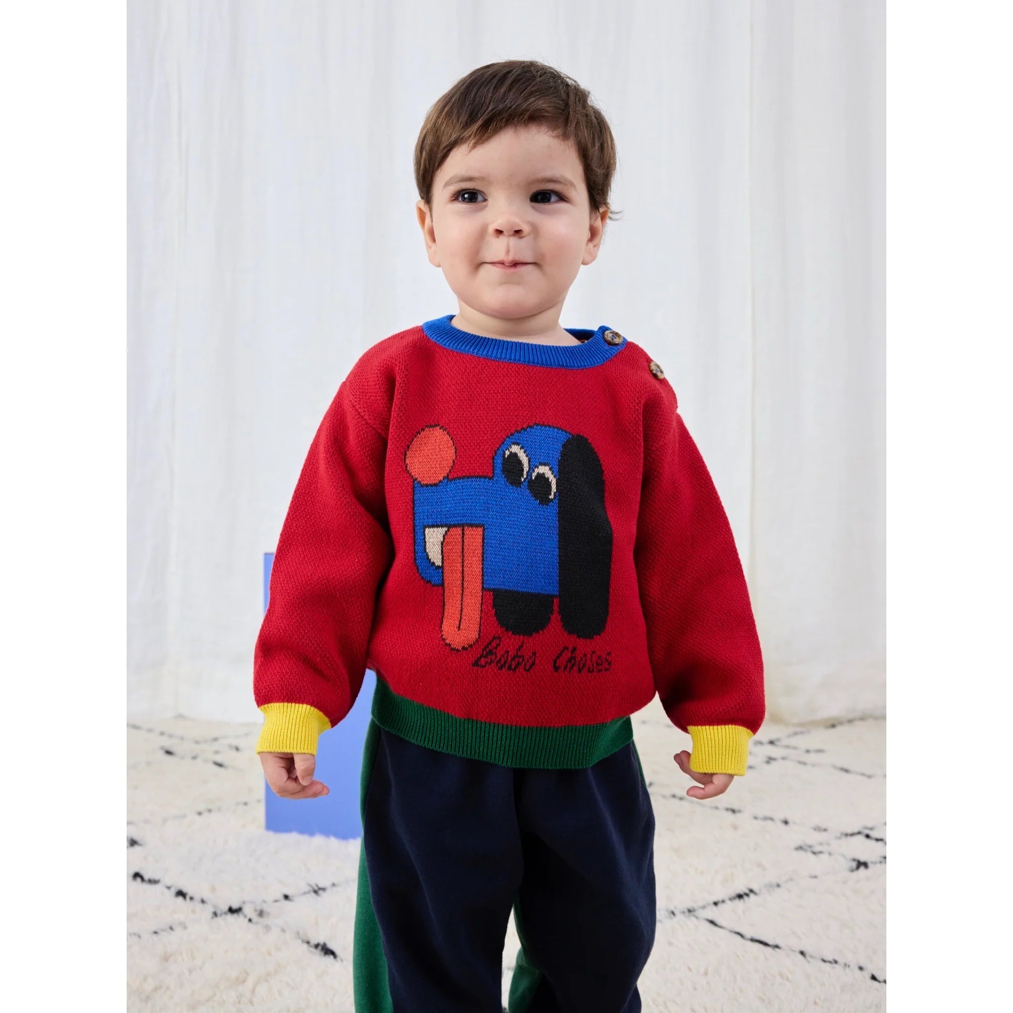 Red jumper. Designed with crew neck, long sleeves, dropped shoulder, shoulder button fastening, ribbed cuffs, jacquard, loose fit and ribbed bottom. Made in Spain.