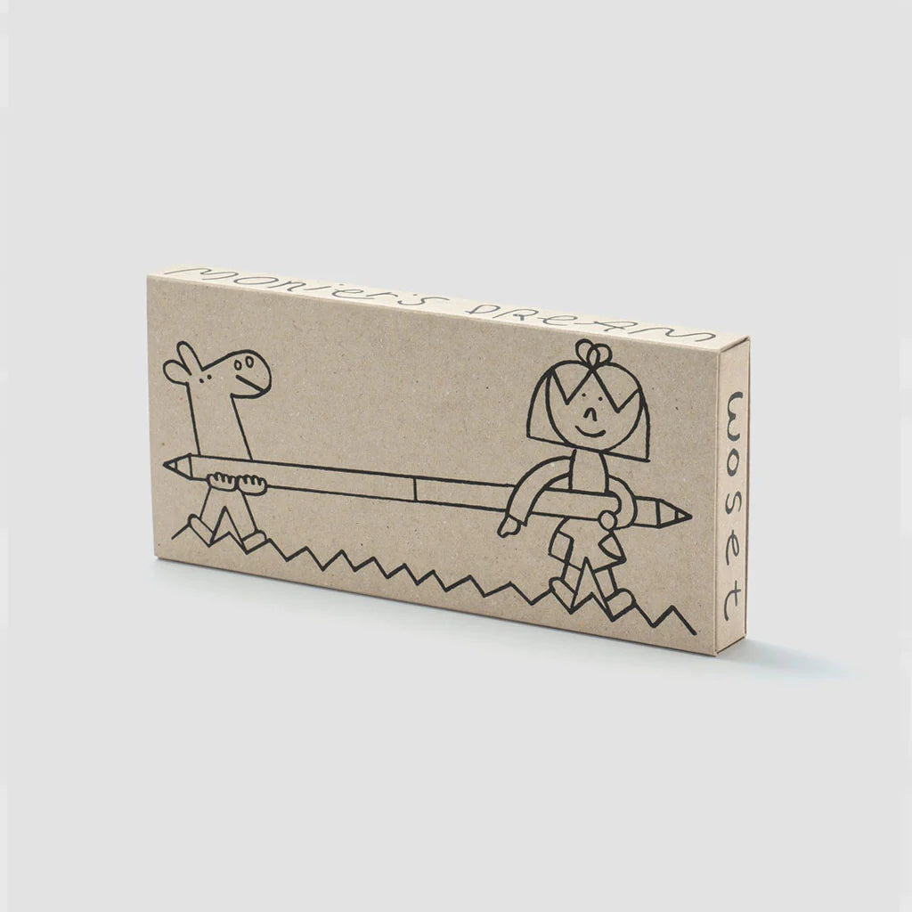 Monier is always asleep and dreaming up new ideas. Just in case he wakes up (which he won't), he keeps a box of colored pencils with dreamy color combinations by his head. Their triangular onigiri shape makes them easy to grip and use even when sleeping. The unique color combinations can make even your wildest creative dreams come true.