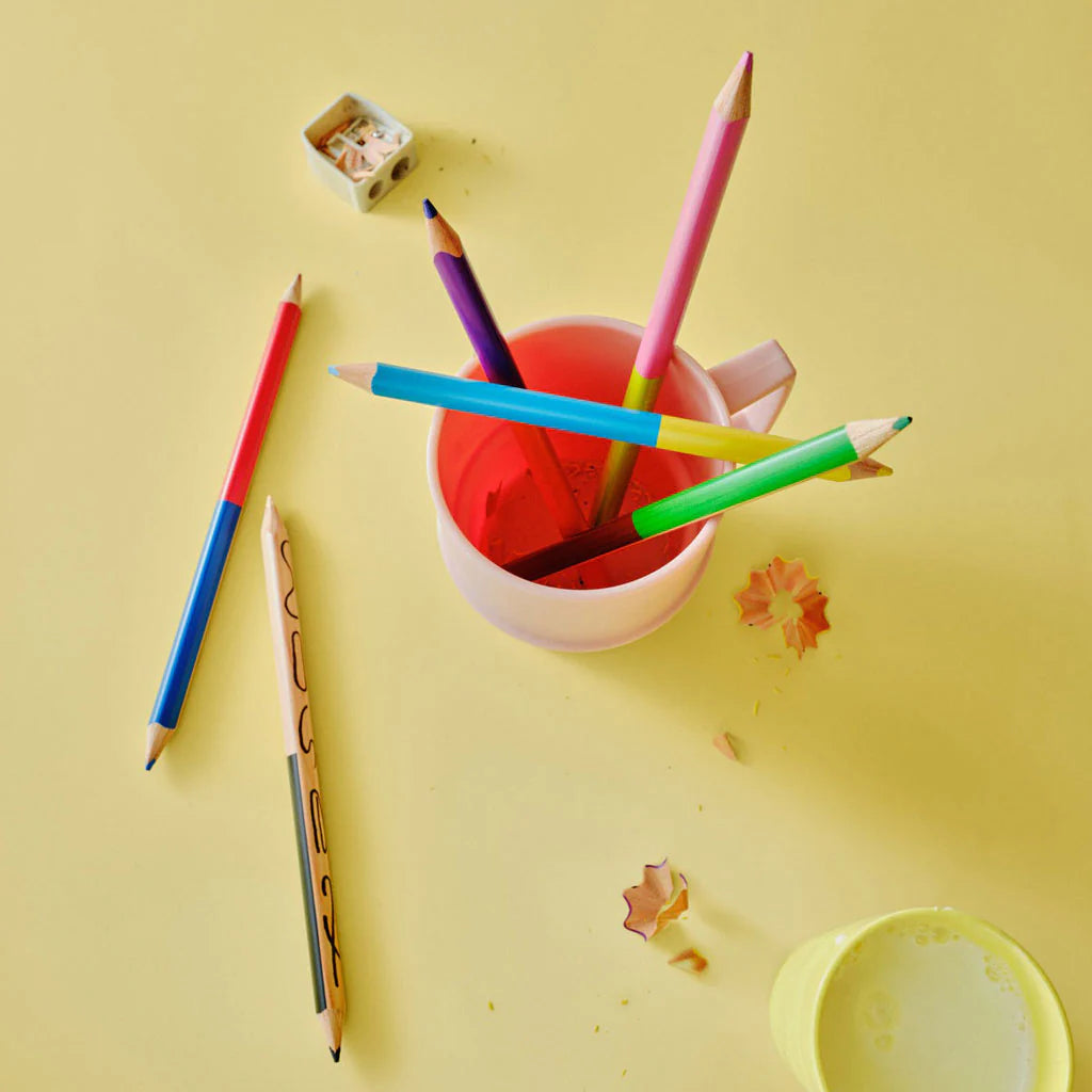 Unleash your creativity with Monier's Dream Colored Pencils from the Kakimori brand Woset. This delightful box of six double-ended colored pencils offers a vibrant spectrum of hues, perfect for artists of all ages. Designed with a unique triangular shape, these pencils provide a comfortable grip for extended use and prevent rolling off the table, ensuring a frustration-free creative experience.