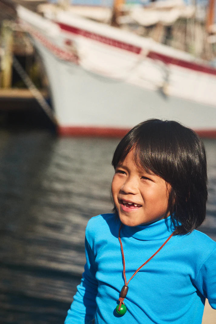A classic long-sleeved turtleneck in organic Pima cotton, with snap closure at the back neck. Perfect for layering.