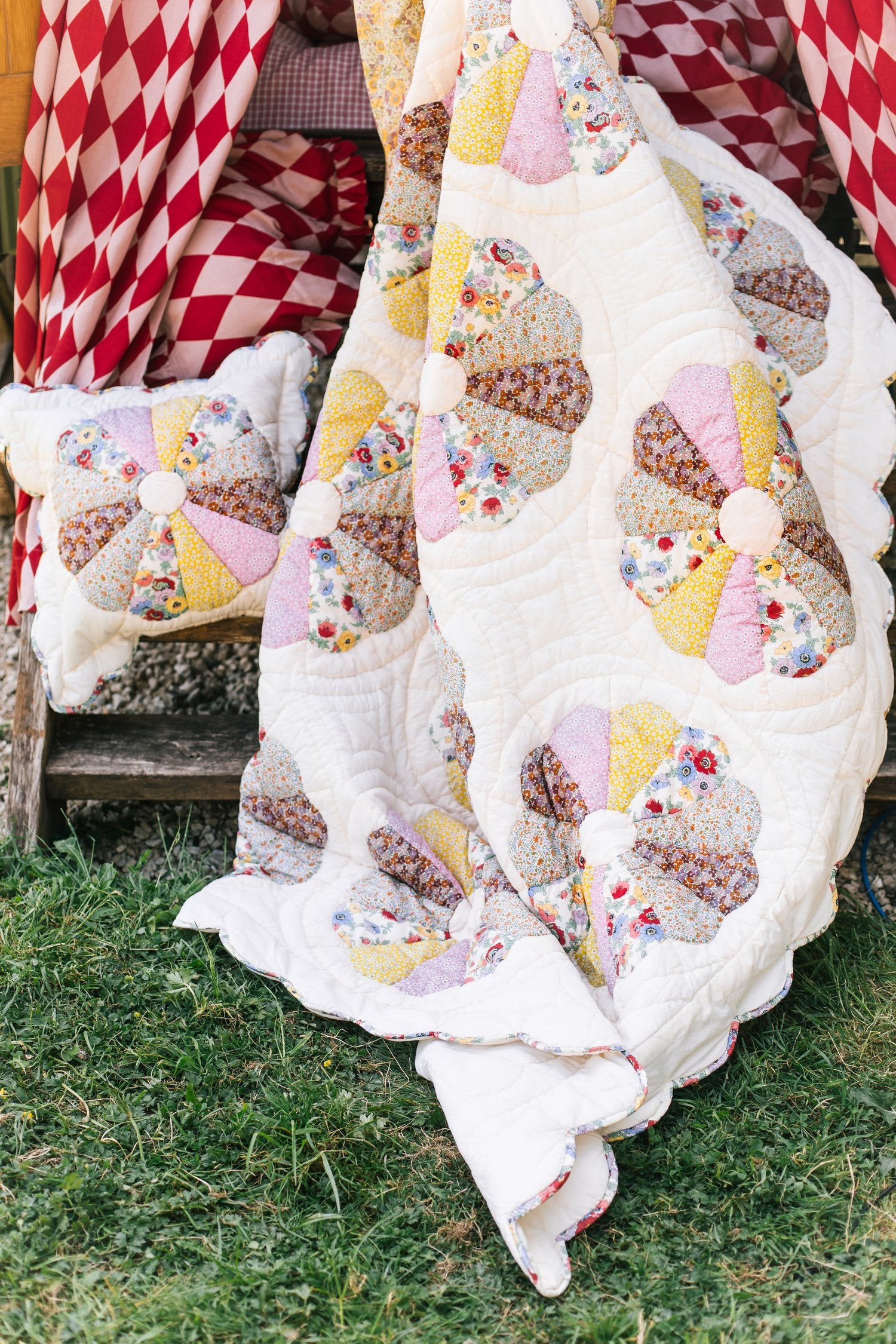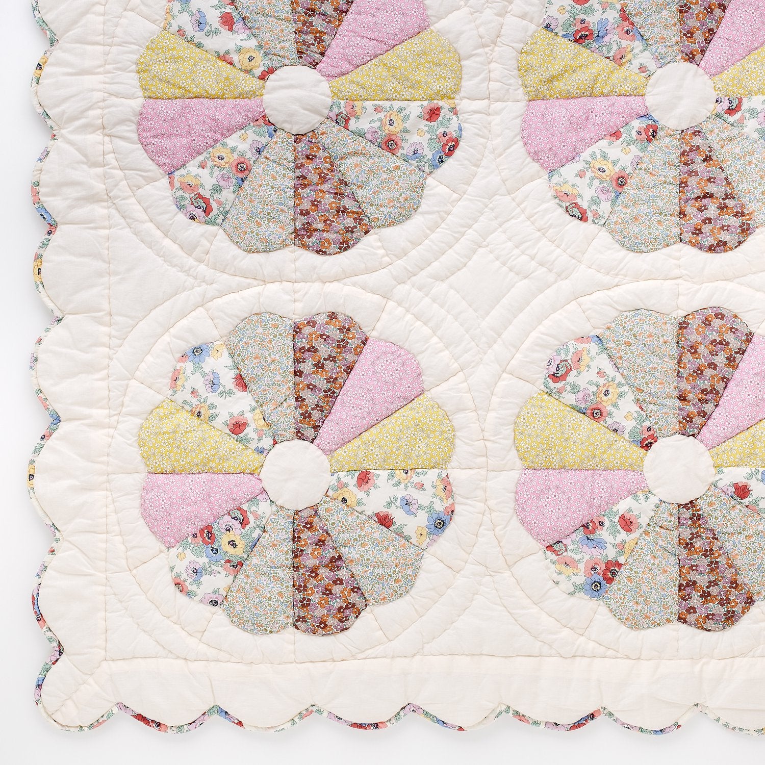 A printed and beautifully bound scallop edging runs around the entire quilt.